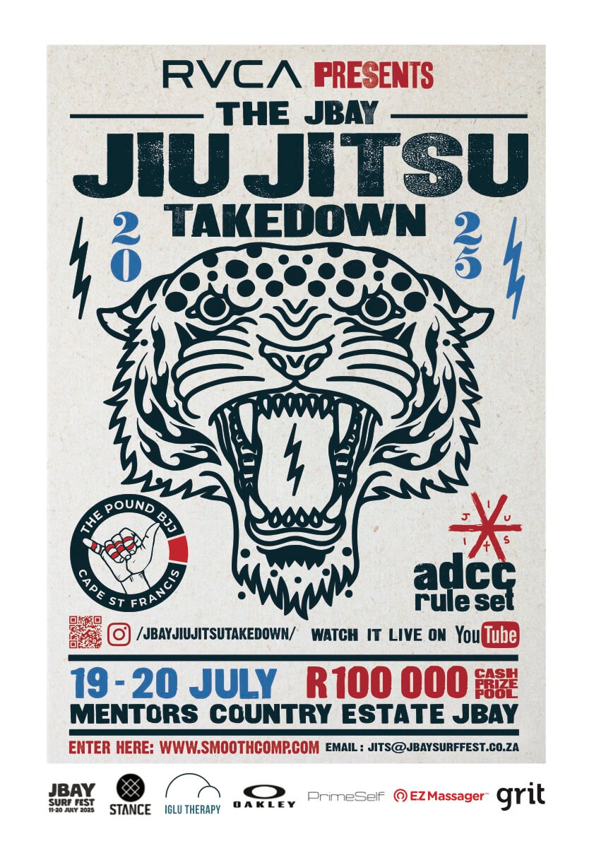 Step into the arena of raw skill and fierce competition at the JBay Jiu Jitsu Takedown 2025 — where grapplers from across the country go head-to-head under the ADCC ruleset. Hosted by The Pound BJJ (Cape St Francis), this electrifying event is one of South Africa's most anticipated grappling showdowns, with R100,000 in prize money up for grabs.