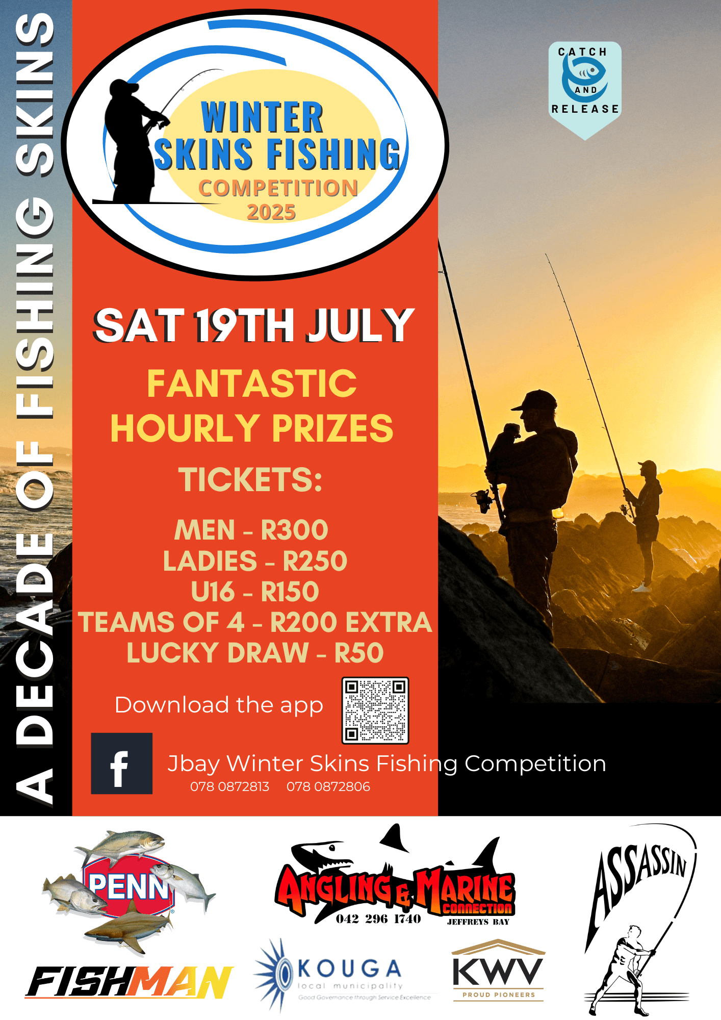 Celebrate a decade of fishing skins at the Winter Skins Fishing Competition 2025 — one of Jeffreys Bay's most anticipated angling events! This catch-and-release tournament promises fantastic hourly prizes, a vibrant community vibe, and something for everyone — from serious anglers to junior fishers.